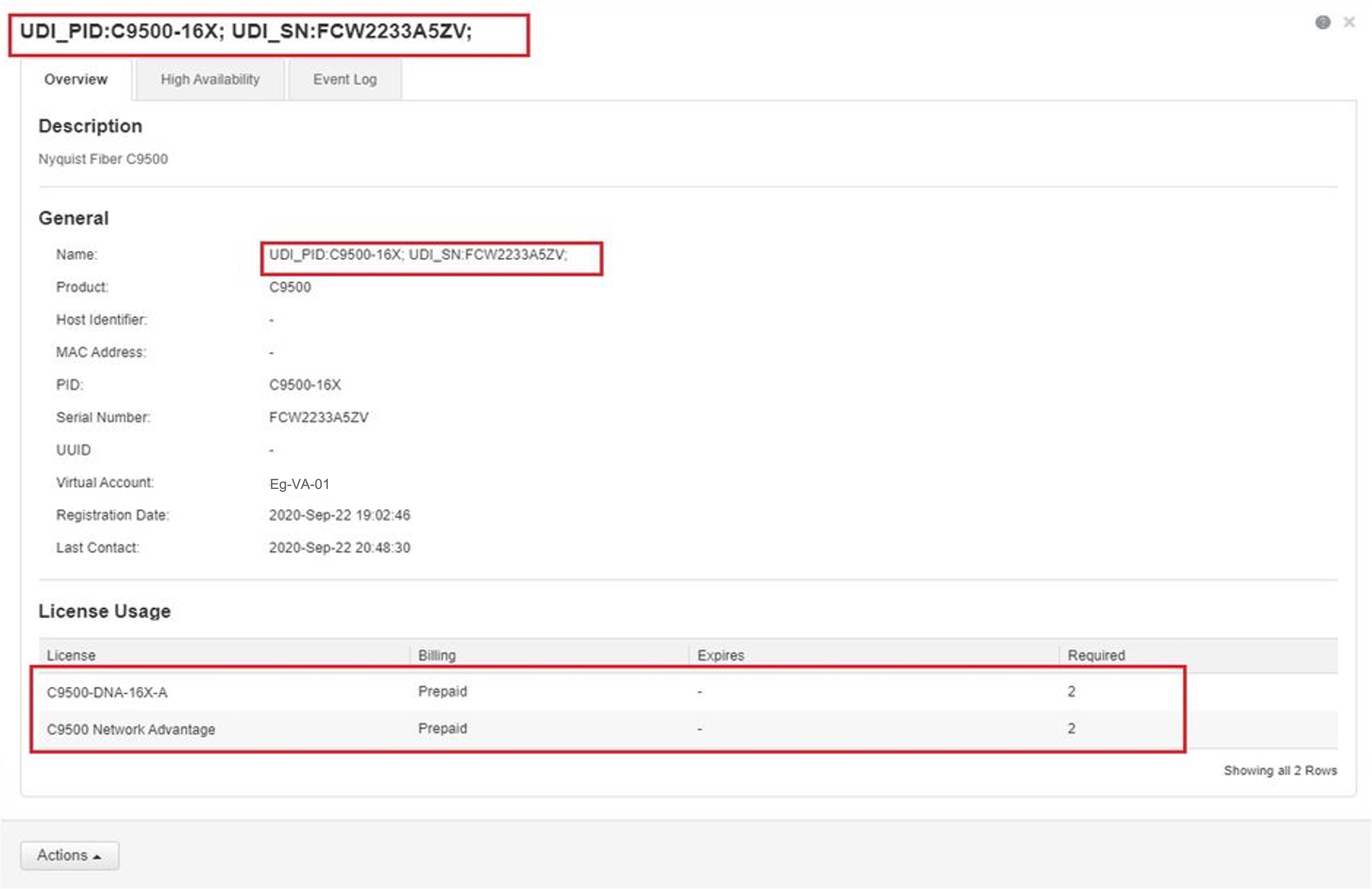 説明: [chars] は、承認コードがインストールされた UDI です。承認コードが削除されました。これにより、製品インスタンスからライセンスが削除され、スマートライセンシングとライセンスを使用する機能の動作が変更される可能性があります。