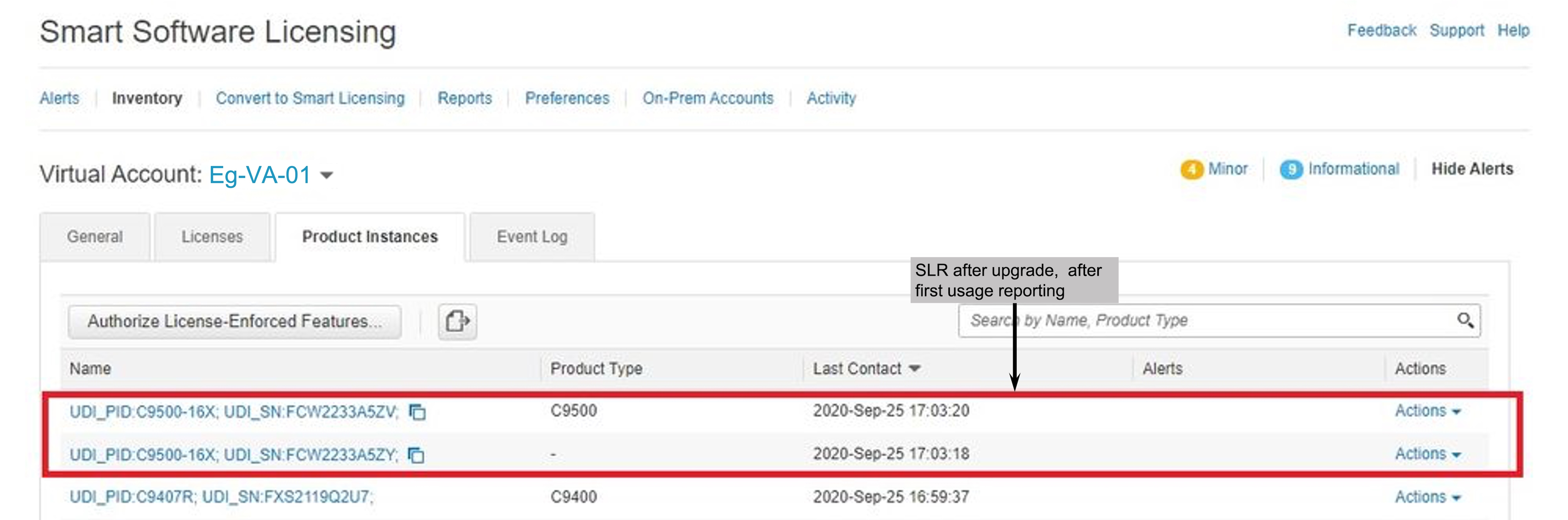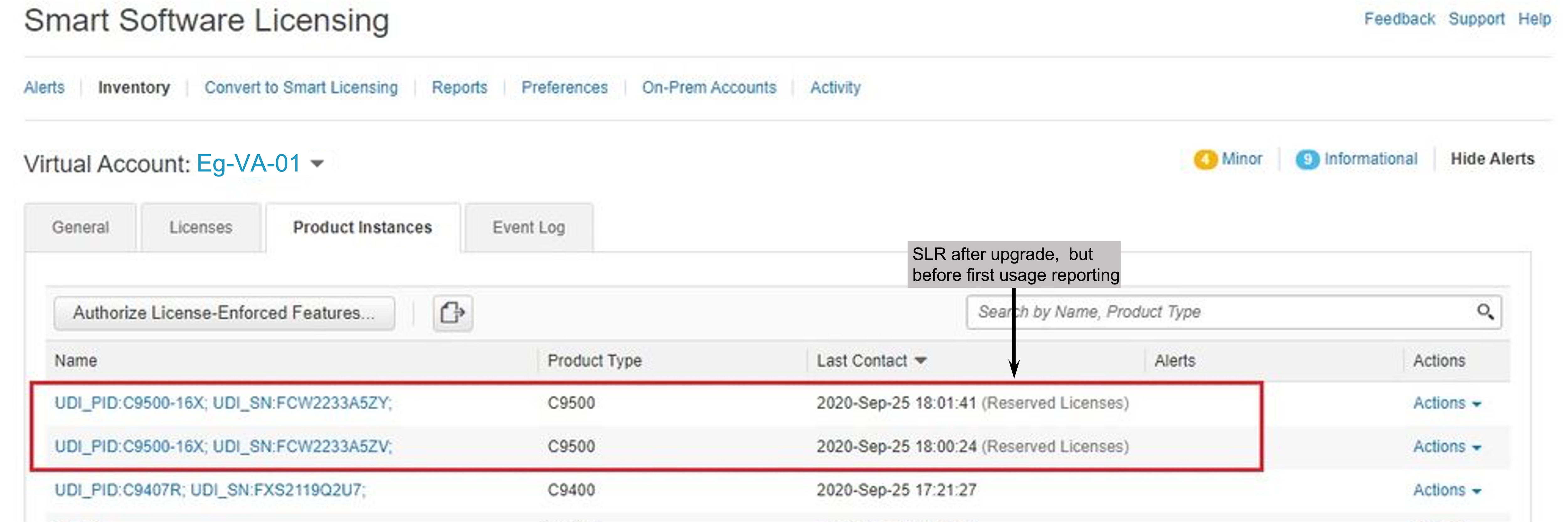 説明:CSSM、CSLU、または SSM オンプレミスのいずれかとの製品インスタンス通信が復元されます。