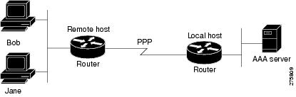 PPP 認証方式としてグループ名を使用するには、RADIUS または TACACS+ セキュリティ サーバーとの通信をイネーブルにしておく必要があります。RADIUS サーバーとの通信を確立する方法の詳細については、「RADIUS の設定」の章を参照してください。TACACS+ サーバーとの通信を確立する方法の詳細については、「TACACS+ の設定」の章を参照してください。