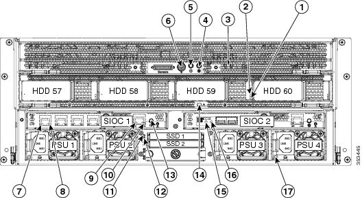 図 3-2 に、背面パネルの LED とボタンを示します。表 3-2 には背面パネルの LED の状態が定義されています。