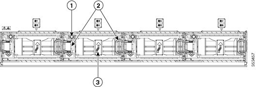 サーバ ノードがミッドプレーン コネクタとかみ合い、シャーシと同じ高さになる位置まで、サーバ ノードをベイに押し込みます。