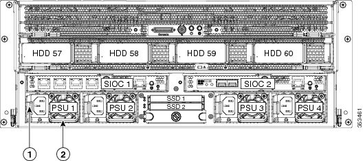 スタンバイ電源モード:電源装置に電源コードを差し込み、電源に接続すると、スタンバイ電源モードでシステムに電源が投入されます。前面パネルの電源ボタン/LED はオレンジ色に点灯します。サーバ ノード サービス プロセッサと冷却ファンにのみ電力が供給されています。