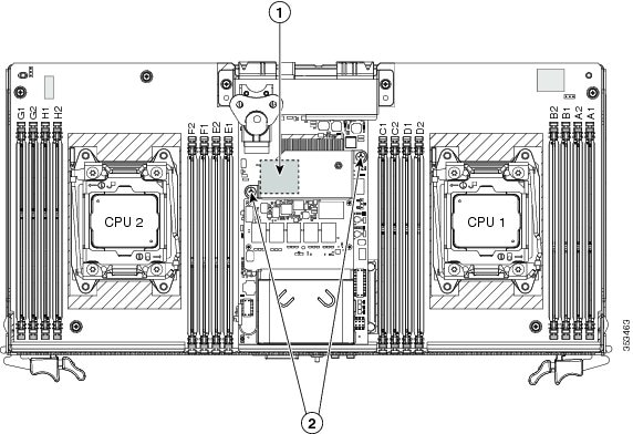 Cisco モジュラ RAID コントローラ カードがサーバ ノード内のメザニン形式のソケットに接続します。SuperCap の電源モジュール(SCPM)は、すでに新しいカードに接続されているため、個別に取り外す必要はありません。
