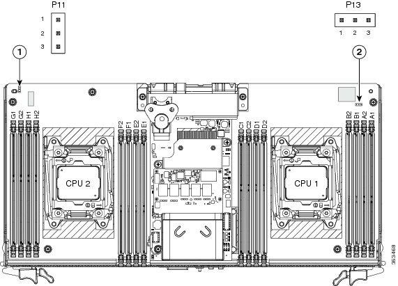 サーバ ノード ボードには、サポート対象の 3 ピン サービス ヘッダーが 2 つあります。サービス ヘッダーの位置については、図 3-29 を参照してください。