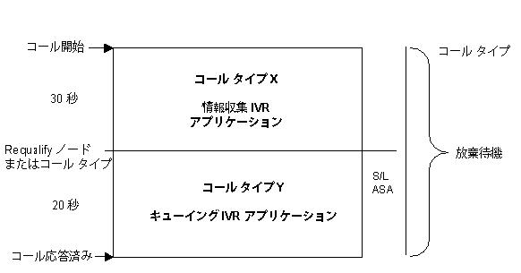 IPCC では、情報収集 IVR アプリケーションおよびキューイング IVR アプリケーションは、通常同じ IVR PG 上にあります。つまり、情報収集アプリケーションおよびキューイング アプリケーションは同じ IVR サービスに属している必要があります。コールが IVR に送信された後に IVR サービスを変更することはできません。ただし、コール タイプは Requalify ノードまたはコール タイプ ノードを使用して変更できます。サービス レベルは両方のコール タイプに定義できますが、Queue to Skill Group を含むコール タイプにサービス レベルを定義することを推奨します。情報収集アプリケーションで切断されたコールは、IVR キューイング アプリケーションに対してキュー レポートが 有効になっている必要があるため、放棄コールと見なされます。ただし、それぞれに個別のコール タイプを定義し、そのコール タイプをルーティング スクリプトで変更することによって、キューイング メトリックを情報収集メトリックから抽出できます。