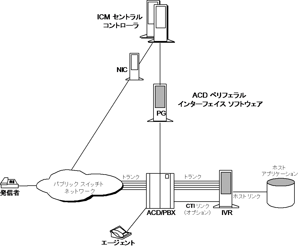 図 7-5 ACD PG だけを使用したネットワーク内 IVR