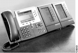 図1 拡張モジュールを 2 台取り付けた Cisco IP Phone 7960G