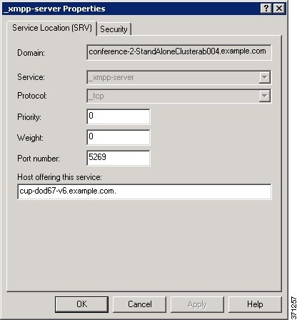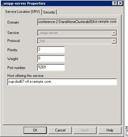 すべてがポート 5269 を使用する複数のパブリック IP アドレスを DNS で公開する場合は、次を設定します。