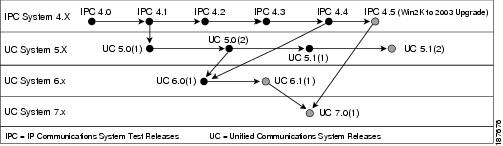 図4-1 IPC Systems Test および Cisco Unified Communications System リリースのアップグレード パス