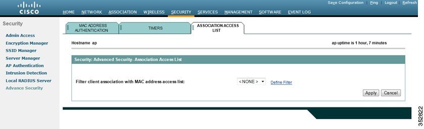 ステップ 4 [Association Access List] タブをクリックして [Association Access List] ページを表示します。図 16-5 は [Association Access List] ページを示しています。