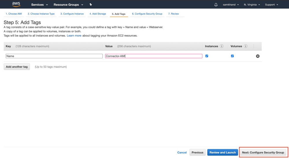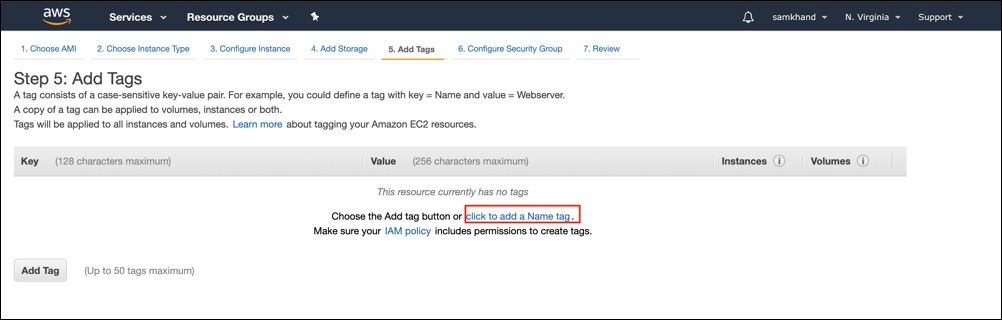 [click to add a Name tag] をクリックします。名前を入力してから、[Next: Configure Security Group] をクリックします。