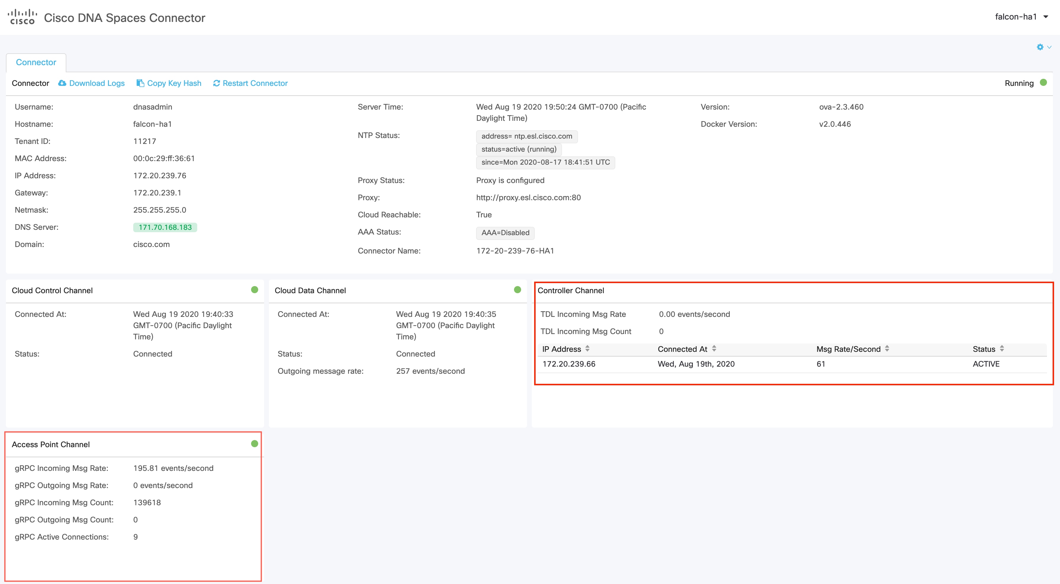 両方の コネクタ が Cisco DNA Spaces から設定を受信します。