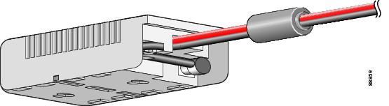次の図に示すように、パワー インジェクタに、保持クリップで 48 VDC 電源コードを固定します。