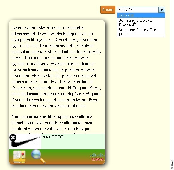 シミュレータは、CMX ダッシュボードの管理ツールの一部として提供され、エンドユーザ デバイスに特化した表示を複製します。