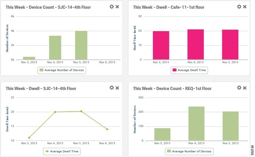 デフォルトでは、[Dashboard] タブは、CMX 分析の UI ログインするときに表示され、次の内容が含まれます(図 4-2 を参照)。