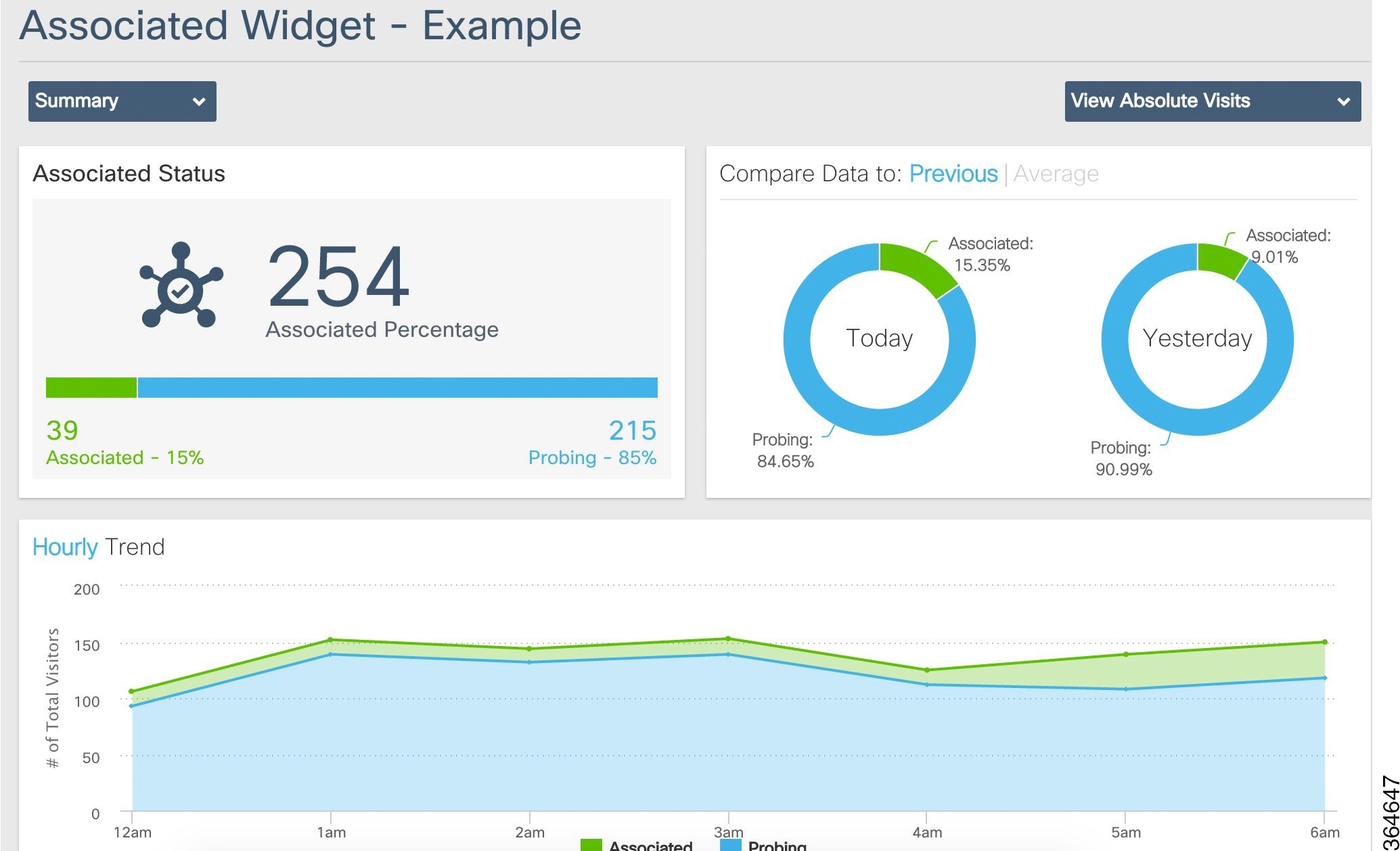 [Associated Status] ウィジェットには、ネットワークに関連付けられているクライアントの数と、ネットワークをプローブしているクライアントに関する詳細なサマリが表示されます。