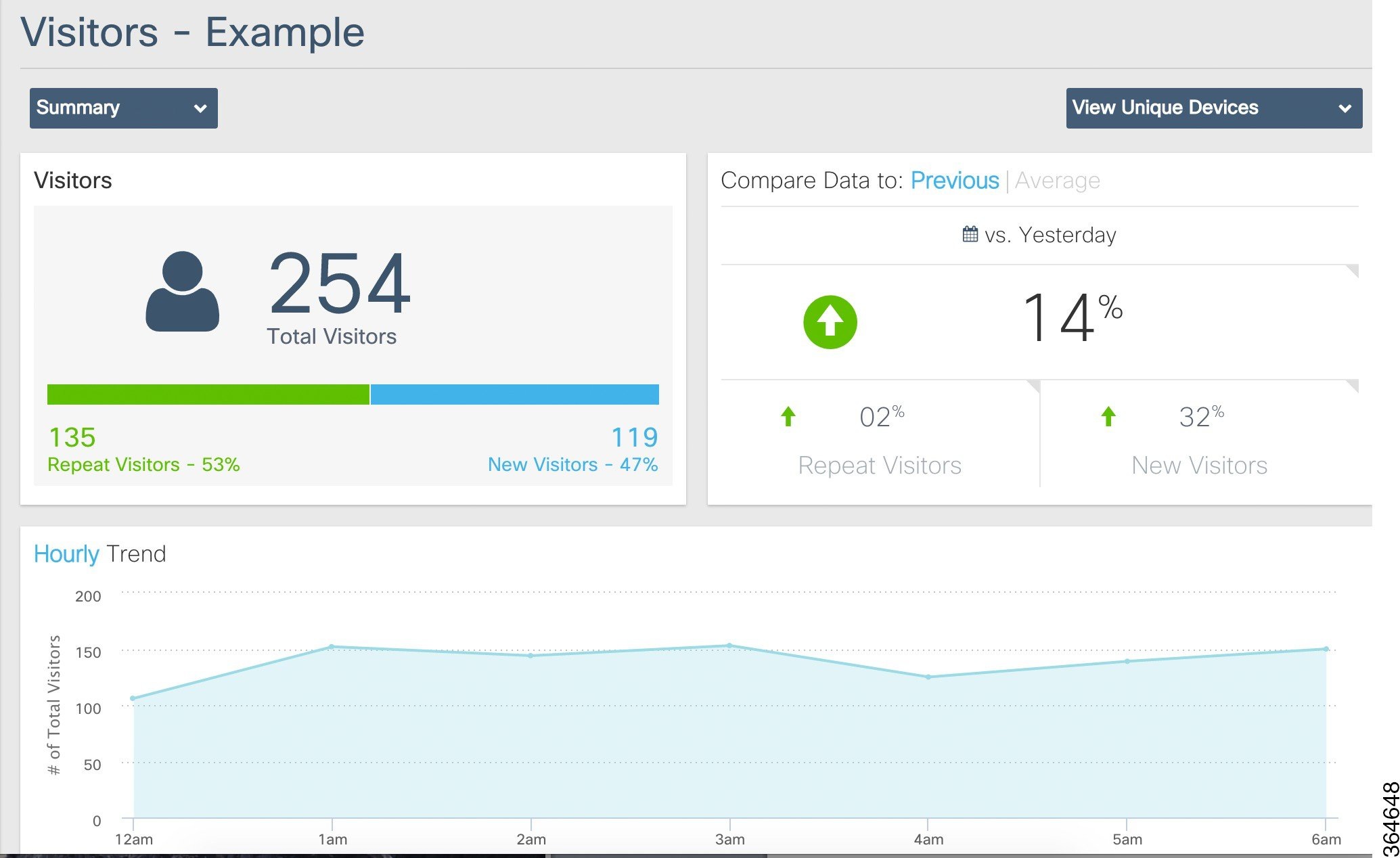 Analytics ダッシュボードは、特定の敷地内でのビジターの行動パターンを理解し、モニタするためのさまざまなレポートを提供します。