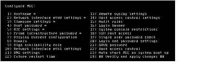 (注) 次回のログイン時に root を使用すると、Linux シェル プロンプトだけが表示され、セットアップ スクリプトは表示されません。root としてログインし、/opt/mse/setup/setup.sh を実行すれば、いつでもセットアップ スクリプトを再実行して設定を変更できます。