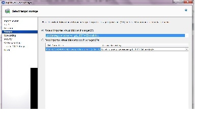 インポートされたディスク イメージを同じ SR に配置するには、[Place all imported virtual disks on this target SR] ラジオ ボタンをクリックし、リストから SR を選択します。