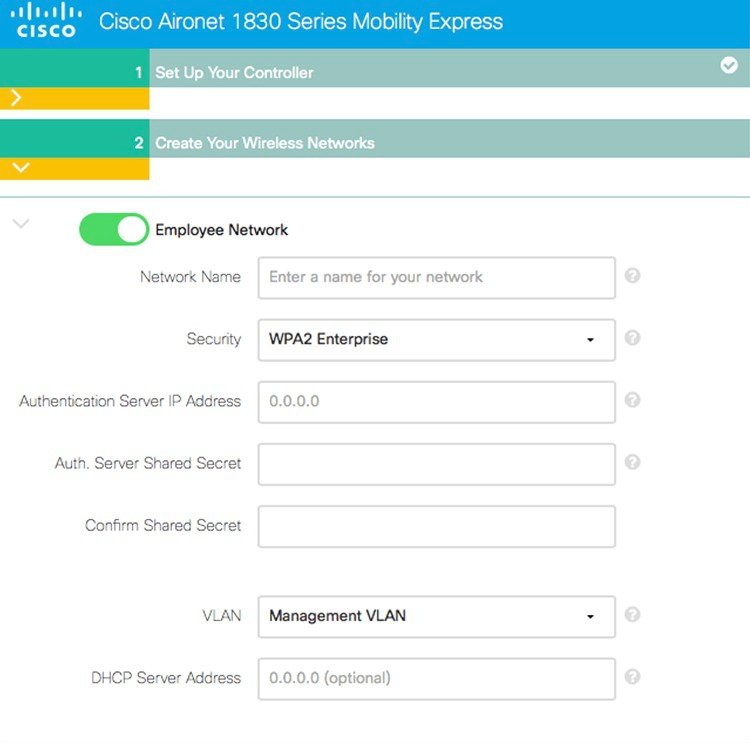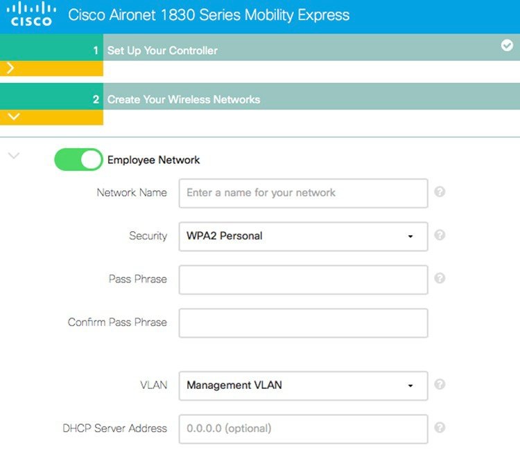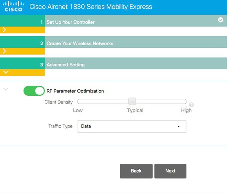Cisco Mobility Express コントローラを初期設定するには、Wi-Fi 経由でコントローラ コンフィギュレーション ウィザードを使用します。