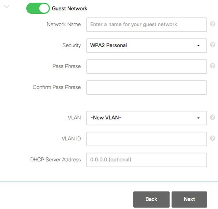 [Network Name]:ゲスト ネットワーク用の SSID を指定します。