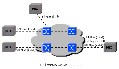 구조적 서비스(Channelized T1 또는 cross-connect라고도 함)는 Point-to-Point Fractional T1(Nx64k) 연결을 에뮬레이션하도록 설계되었습니다. 이를 통해 T1은 여러 DS-0 채널을 통해 서로 다른 대상으로 이동할 수 있습니다. 둘 이상의 회로(AAL1) 엔티티가 동일한 물리적 T1 인터페이스를 공유합니다. 이 서비스를 제공하기 위해, AAL1은 데이터의 반복적인 고정-크기 블록들을 묘사할 수 있다(블록 크기는 옥텟의 정수, 여기서 옥텟은 64k 채널을 나타낸다).