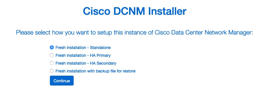 참고:이 서브넷은 DCNM 및 컴퓨팅 노드에 할당된 eth0/eth1/eth2 인터페이스에 할당된 네트워크와 겹치지 않아야 합니다.또한 이 서브넷은 스위치에 할당된 IP 또는 DCNM에서 관리하는 다른 디바이스와 겹치지 않아야 합니다.선택한 서브넷은 DCNM 기본 및 보조 노드(기본 HA 구축의 경우)를 설치할 때 일관성을 유지해야 합니다.