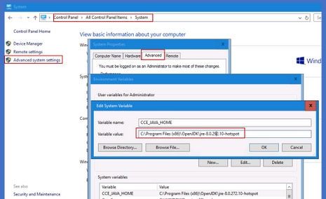 4단계. 새 OpenJDK JRE(Java Runtime Environment) 위치를 가리키도록 CCE_JAVA_HOME 환경 변수를 수정합니다.