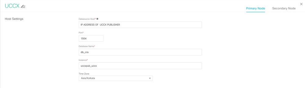 - 데이터 원본 호스트:UCCX 게시자 노드의 IP 주소