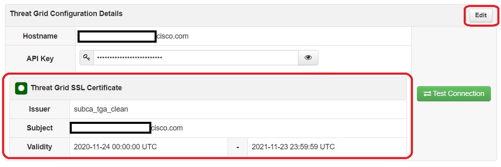 6단계. Threat Grid Configuration Details에서 Edit를 선택합니다.