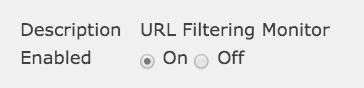 URL Filtering Monitor 모듈을 활성화하려면 Health Policy Configuration 페이지로 이동하여 URL Filtering Monitor를 선택합니다. 상태 테스트를 위해 모듈의 사용을 활성화하려면 Enabled 옵션에 대한 On 라디오 버튼을 클릭합니다. 설정을 적용하려면 FireSIGHT Management Center에 상태 정책을 적용해야 합니다.