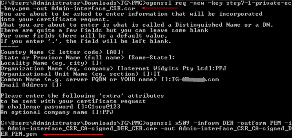 관리 인터페이스 CSR 및 CER - PEM