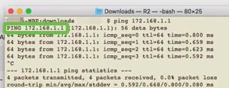 명령을 입력하여 WAN 2 게이트웨이를 ping합니다.Mac 컴퓨터에서 ping은 Ctrl+C를 누를 때까지 계속됩니다.