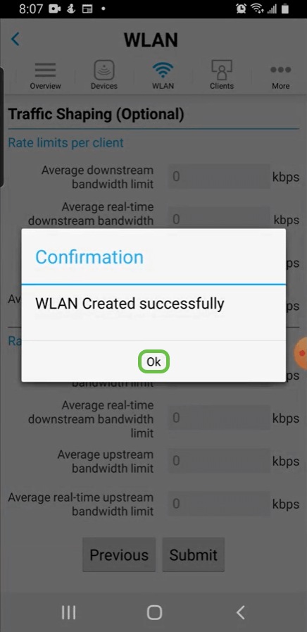 이 화면에서는 트래픽 셰이핑 옵션을 제공합니다.이 예에서는 어떤 트래픽 셰이핑도 구성되지 않았습니다.Submit(제출)을 클릭합니다.