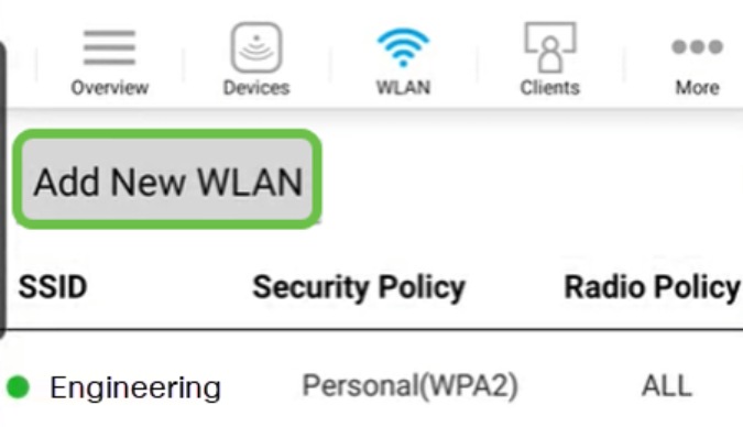 Add New WLAN 화면이 열립니다.기존 WLAN이 표시됩니다.Add New WLAN(새 WLAN 추가)을 선택합니다.