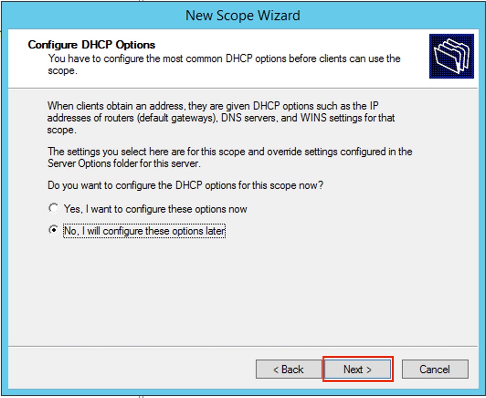 DNS/WINS와 같은 DHCP 옵션 매개변수를 구성할 수 있습니다(이 예에서는 건너뜀).