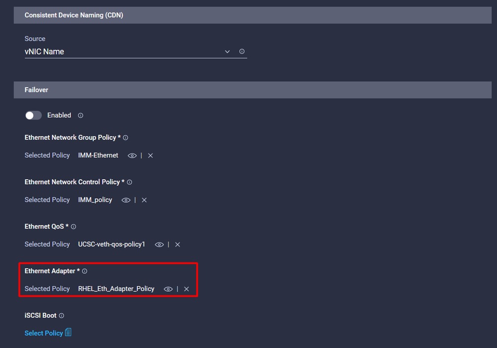 Maak het Ethernet-adapterbeleid met de voorgestelde waarden door de OS-leverancier.