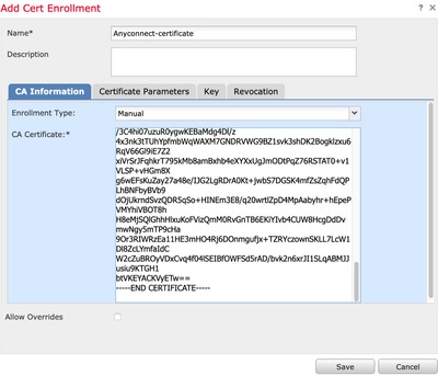 Opmerking: op FTD-apparatuur is het certificaat van de certificeringsinstantie (CA) vereist voordat het verzoek tot ondertekening van het certificaat (CSR) wordt gegenereerd.