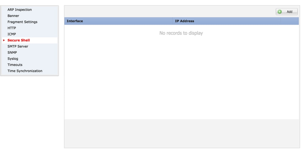 Opmerking: op FTD-apparaten waarop softwareversie 6.0.1 wordt uitgevoerd, biedt de SSH-configuratie op Platform Settings rechtstreeks toegang tot de diagnostische CLI en niet tot de CLISH. U moet verbinding maken met het IP-adres dat op br1 is geconfigureerd om toegang tot de CLISH te krijgen. Op FTD-apparaten waarop softwareversie 6.1.0 wordt uitgevoerd, navigeren alle interfaces echter naar de geconvergeerde CLI wanneer ze via SSH worden benaderd
