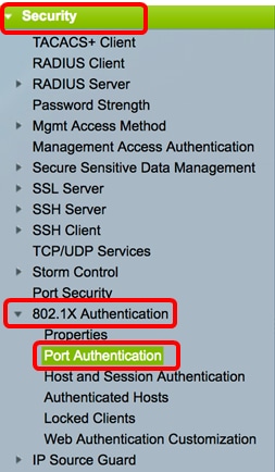 Stap 2. Kies Security > 802.1X verificatie > Port-verificatie.
