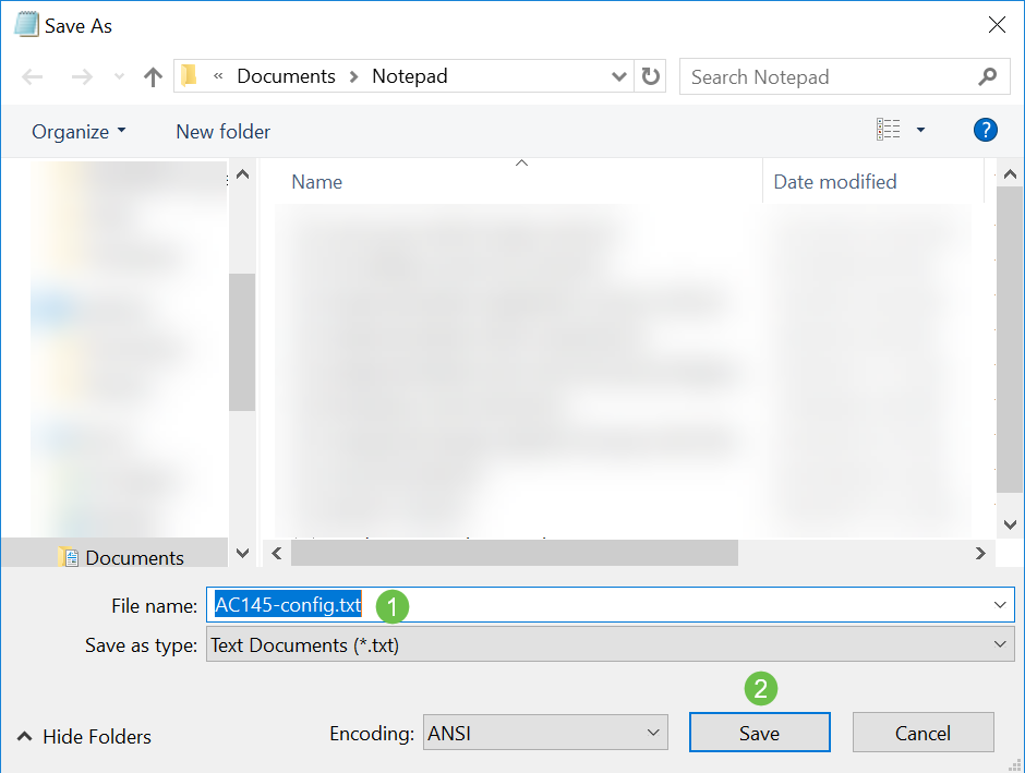 Voer een naam in voor het configuratiebestand. Klik op Save (Opslaan). Noteer de locatie van het bestand dat u wilt uploaden.