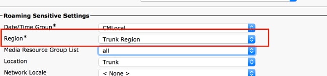 Nas capturas de tela acima, presume-se que um endpoint esteja na região "Trunk Region" e o outro esteja na região "Endpoints locais".
