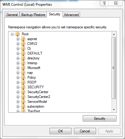 Raiz\CIMV2) e, em seguida, clique em Segurança.