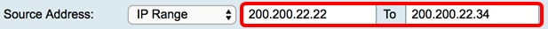Note: Neste exemplo, 200.200.22.22 é usado como o endereço IP inicial e 200.200.22.34 como o endereço IP final.