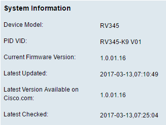 Etapa 5. Faça login novamente no utilitário baseado na Web e escolha Admin > File Management, em System Information (Informações do sistema), para verificar a versão atual do firmware do roteador.
