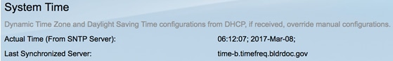 A página Hora do sistema do utilitário baseado na Web fornece maneiras de configurar a hora do sistema, o fuso horário e o Horário de verão (DST).