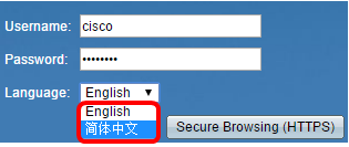 Note: Se quiser usar Inglês novamente, escolha Inglês nas opções suspensas Idioma. Como alternativa, você também pode escolher seu idioma ao fazer login no utilitário baseado na Web do switch.