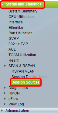 Etapa 1. Escolha Status e Statistics > SPAN & RSPAN > Session Sources.