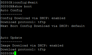 Agora você deve ter configurado as configurações do servidor IP DHCP TFTP no switch por meio da CLI.