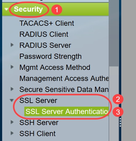 Navegue até Segurança > Servidor SSL > Autenticação de servidor SSL.